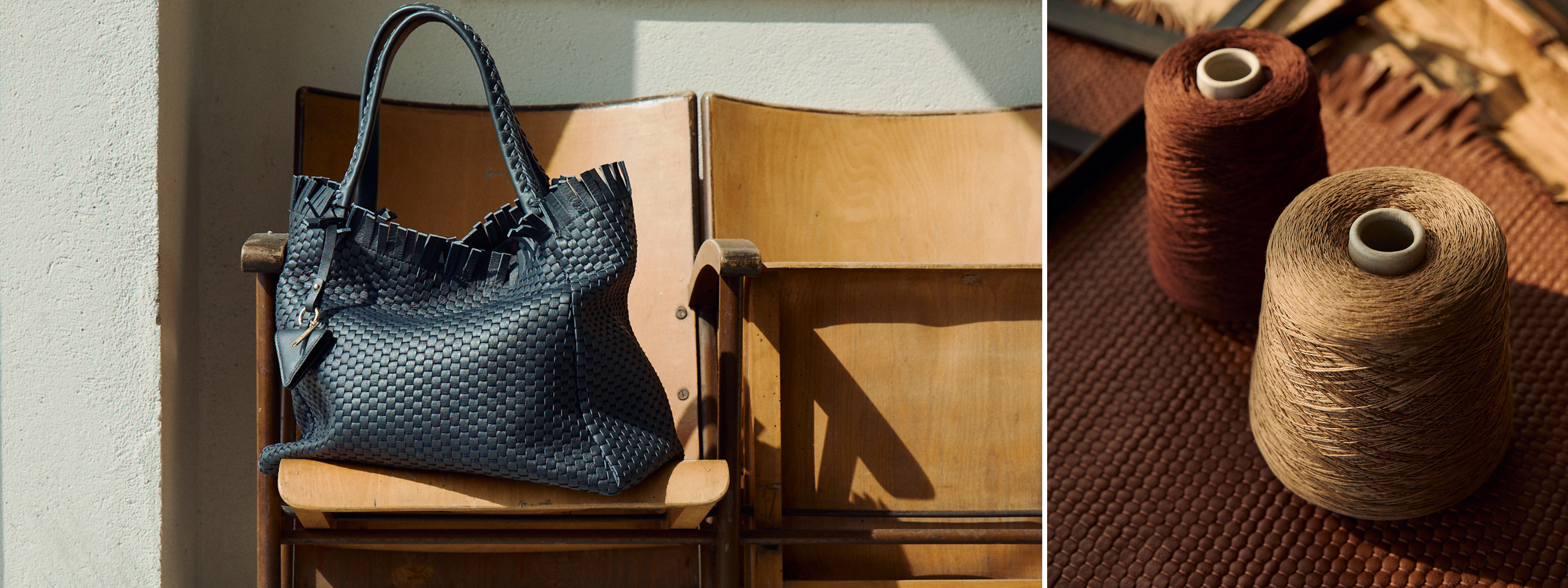 Each bag is born from the weaving of 0.9 cm leather strips thanks to an ancient 1700s wooden treadle, used to make sumptuous tapestries for Venetian nobles.